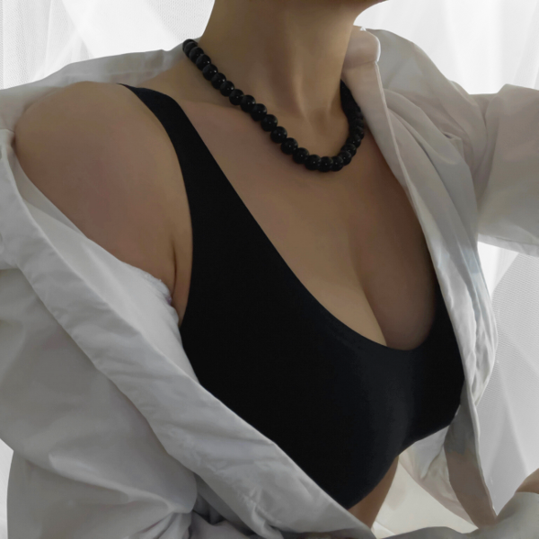 실버925 오닉스볼 블랙 원석 구슬 초크목걸이