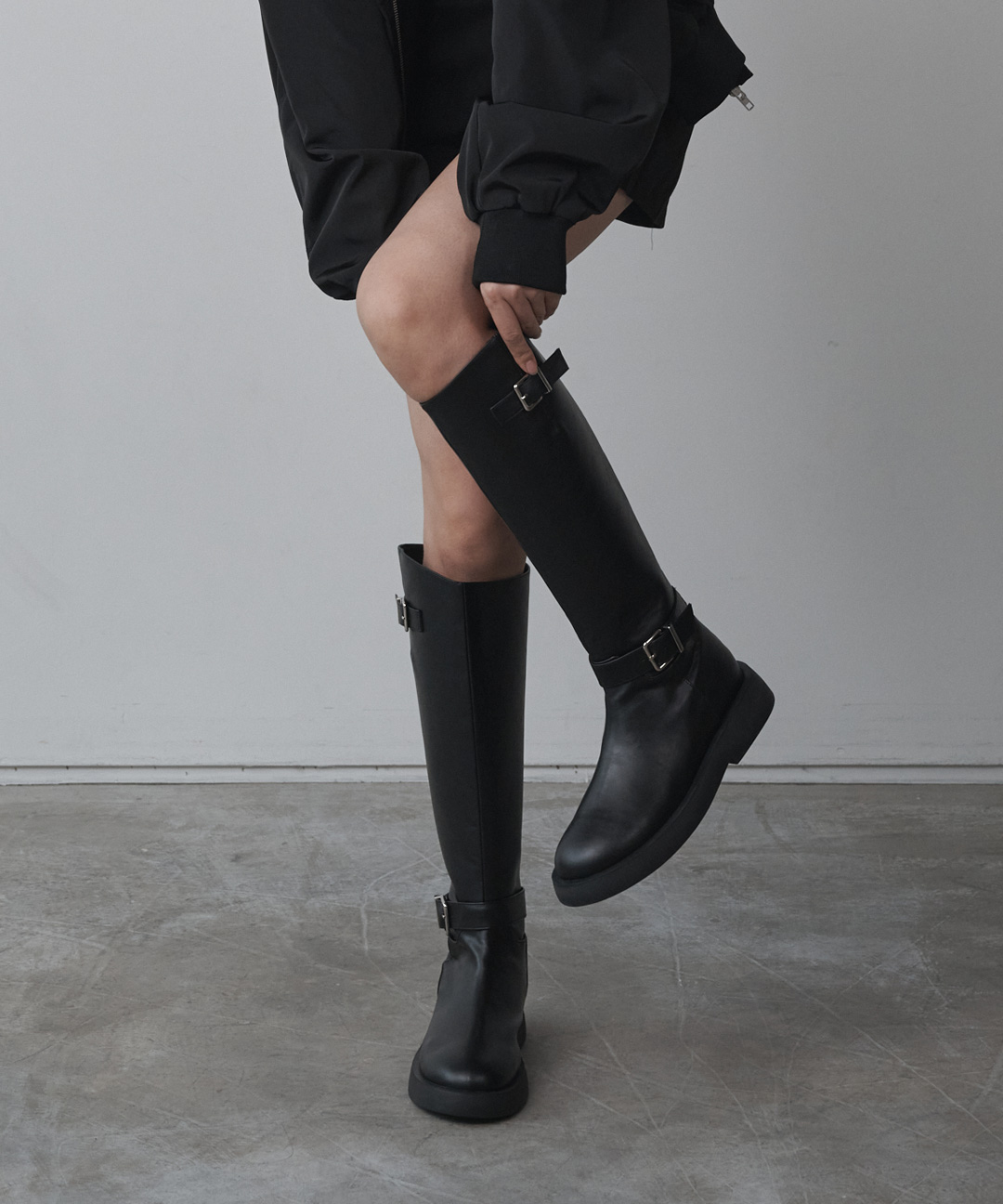 (1/7, 예약배송) 라운드 토 라이더 플랫 롱부츠 412348002 (3.5cm/2colors)