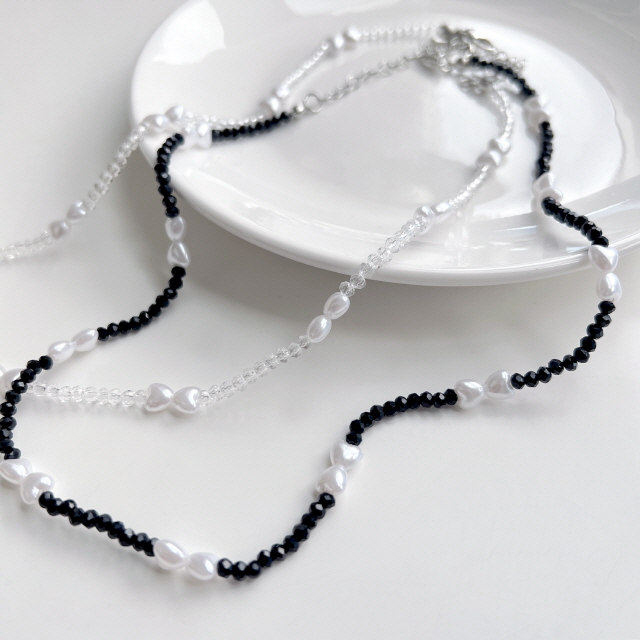 [❤️당일출고❤️] 엘루아 하트 진주 크리스탈 원석 펄 초커 비즈 레이어드 목걸이 2color
