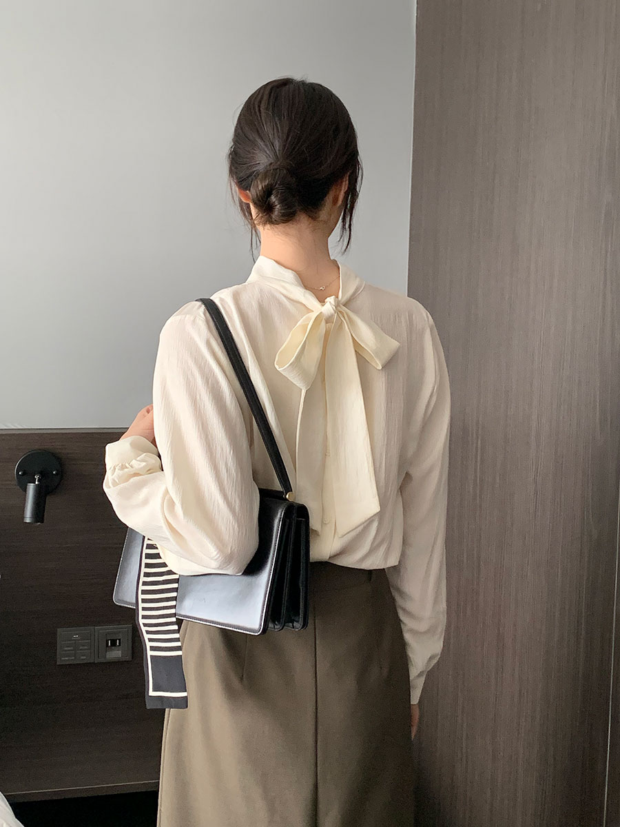 티안 투웨이 하이넥 핀턱 타이 스카프 블라우스 2color