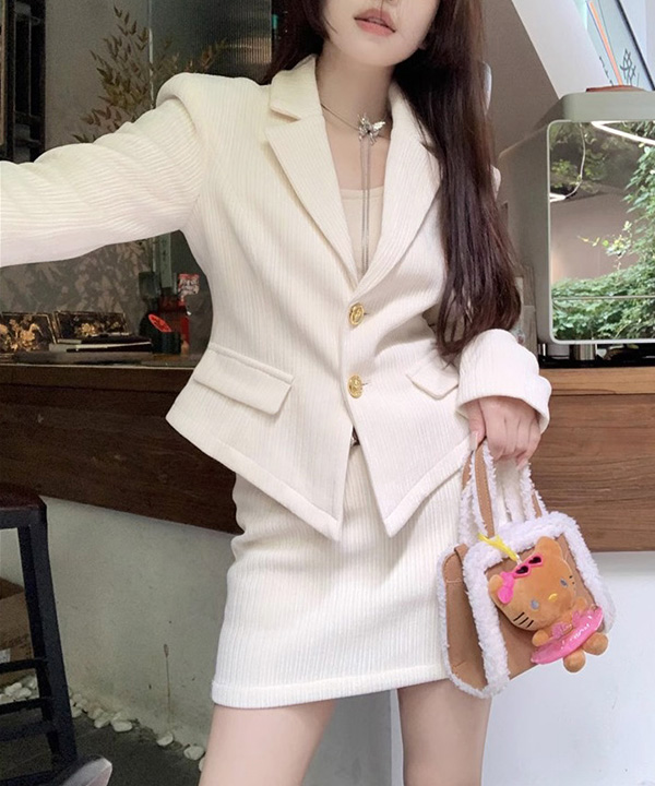 무료배송 [코디세트 자켓+스커트] 선데이클래식 수트정장하객룩셋업 (아이보리,블랙)