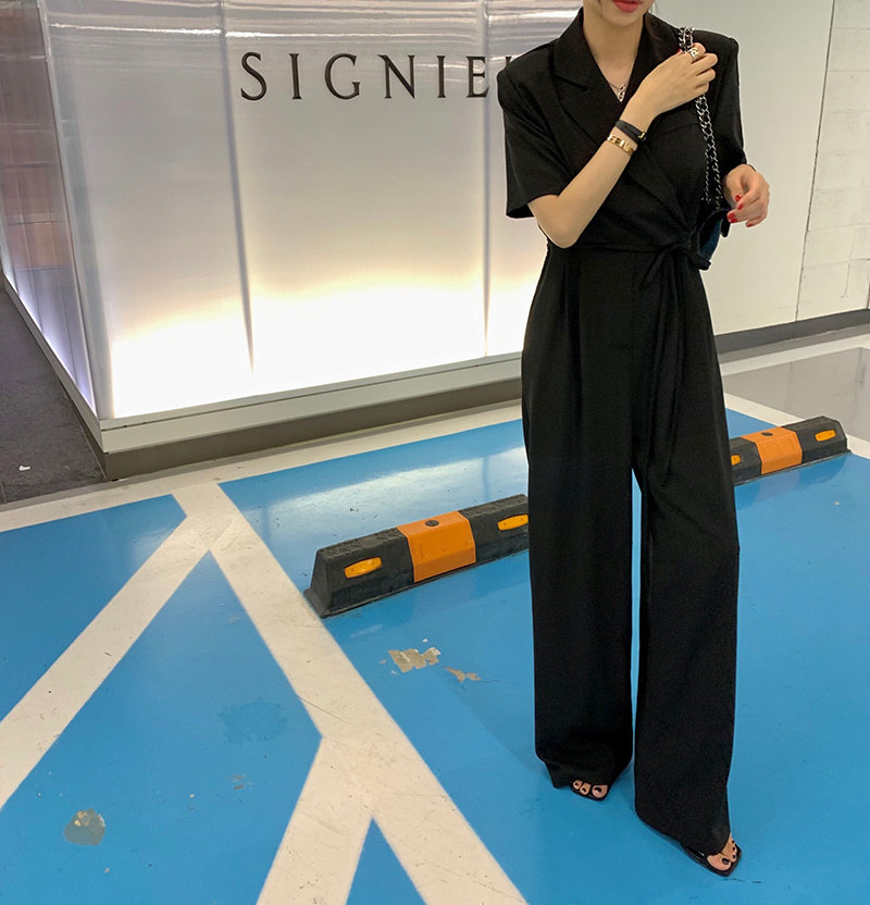 [당일출고] 사로주 봄 가을 결혼식 하객룩 와이드 정장 점프수트 오버롤팬츠 앙또드
