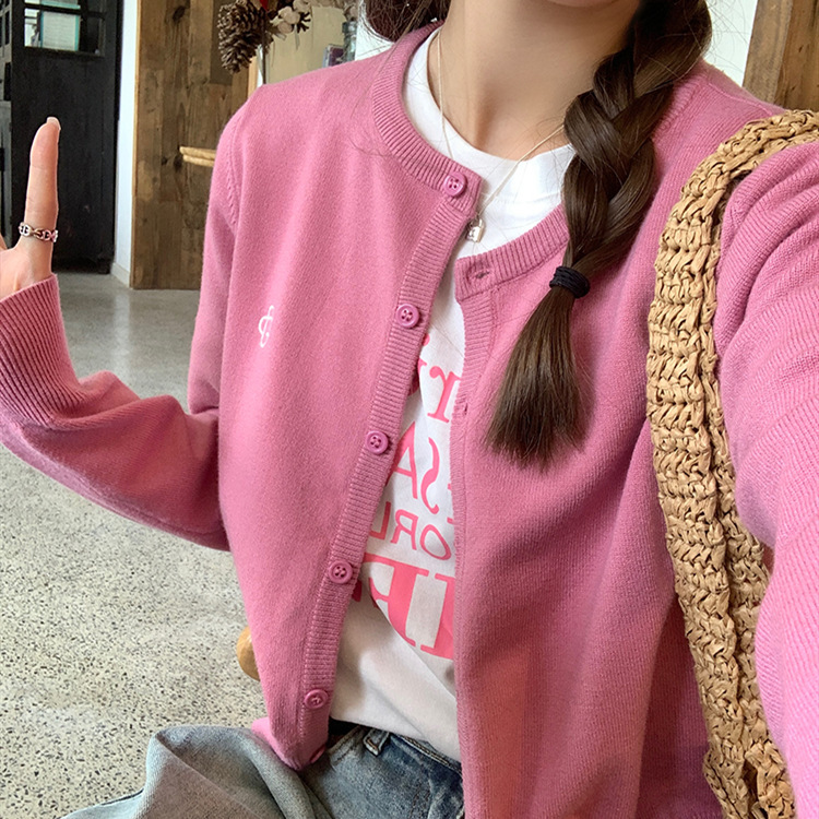 [당일출고] 사루미 봄 가을 간절기 니트가디건 핑크 블루 회색 라운드 숏 가디건 앙또드
