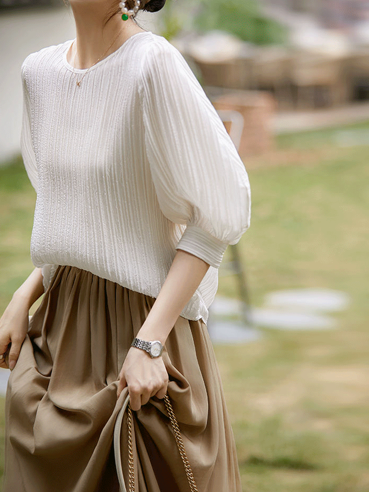 SX-2537 페미닌한 라운드 플리츠 블라우스