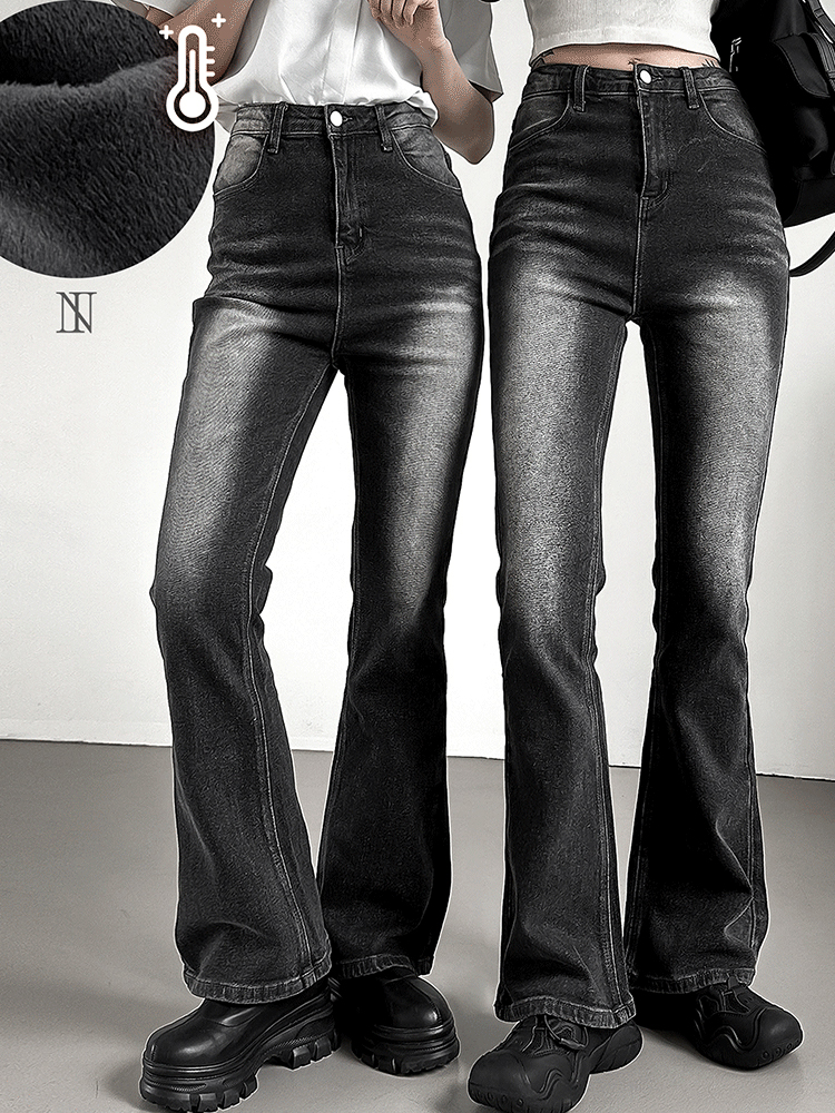 당일출고🚀[+기모추가🔥숏/롱] 하이웨스트 흑청 워싱 부츠컷 데님팬츠 / 블랙진