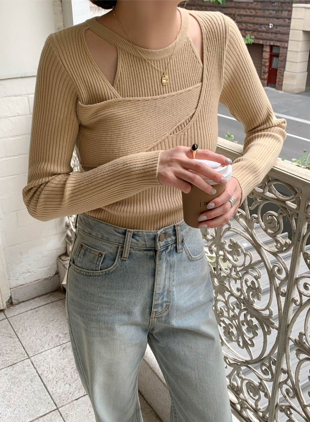 [💕발레코어룩] 시그니처 마인 골지 슬림 레이어드 홀터넥 니트 3color