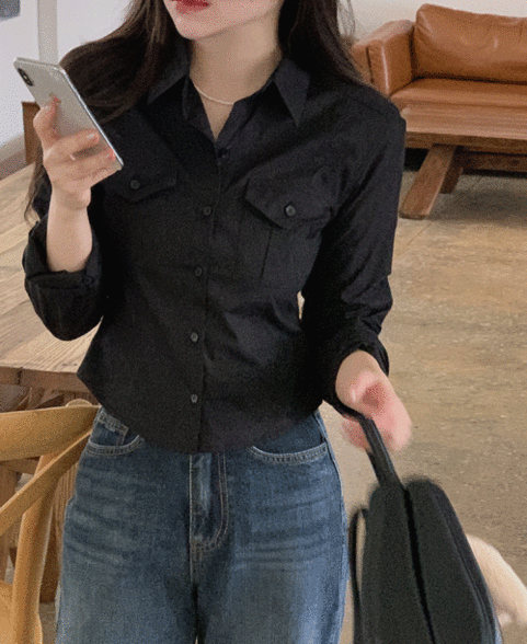 보니떼 포켓 슬림핏 핀턱 코튼 가을 크롭 셔츠 (2color)