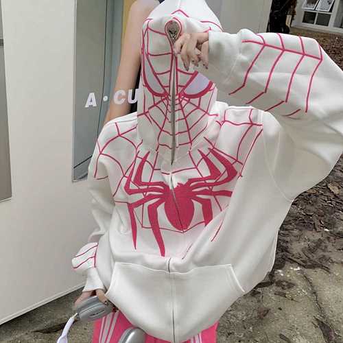 화이트 핑크 거미 스파이더 후드 후디 집업 가디건 J21