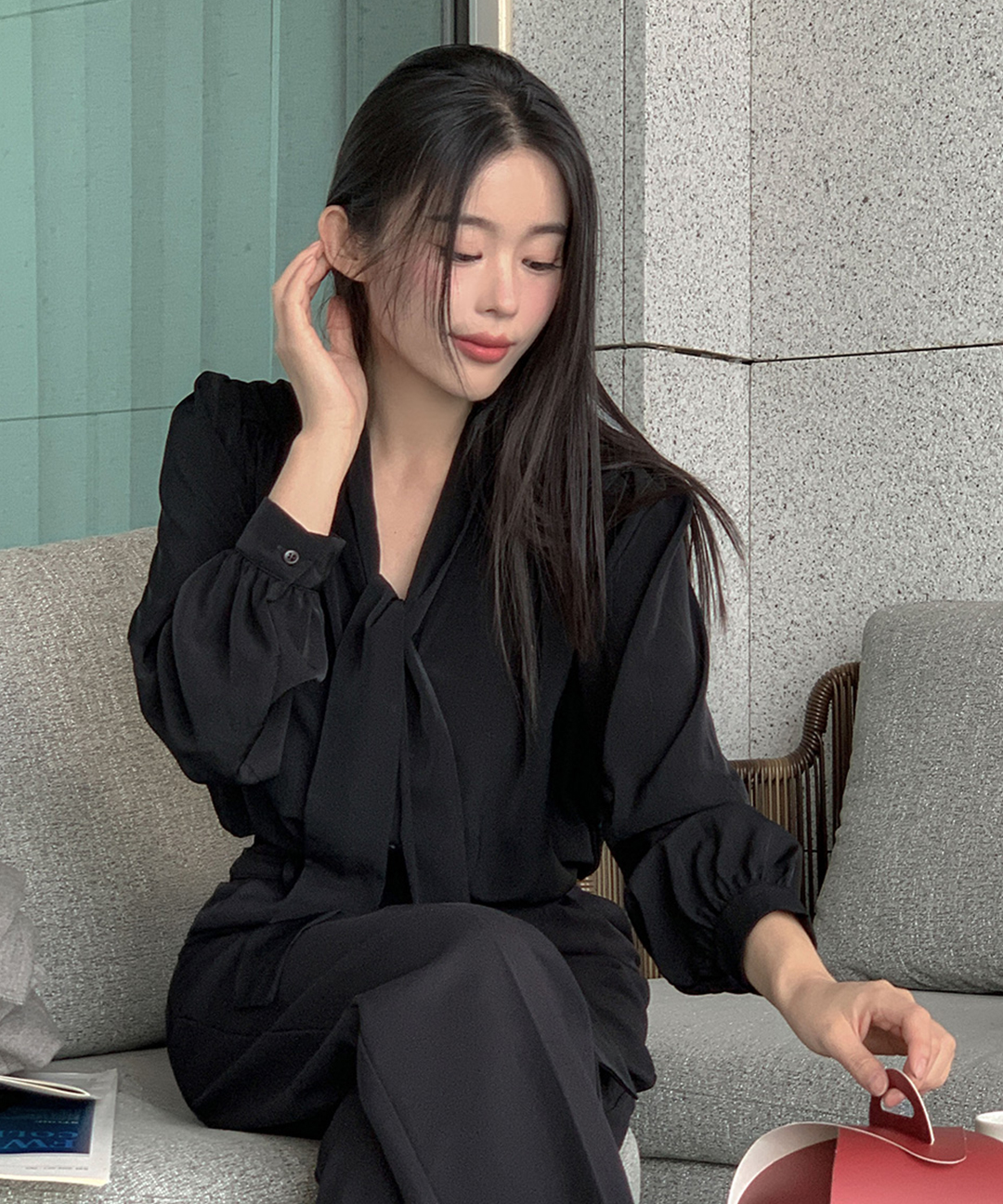 [30만장돌파/MADE]애니브 브이넥 셔링 타이 블라우스 (S-XL/하객룩/출근룩/연말룩/레이어드블라우스/긴팔블라우스/겨울블라우스/겨울하객룩/하객룩블라우스/빅사이즈블라우스)