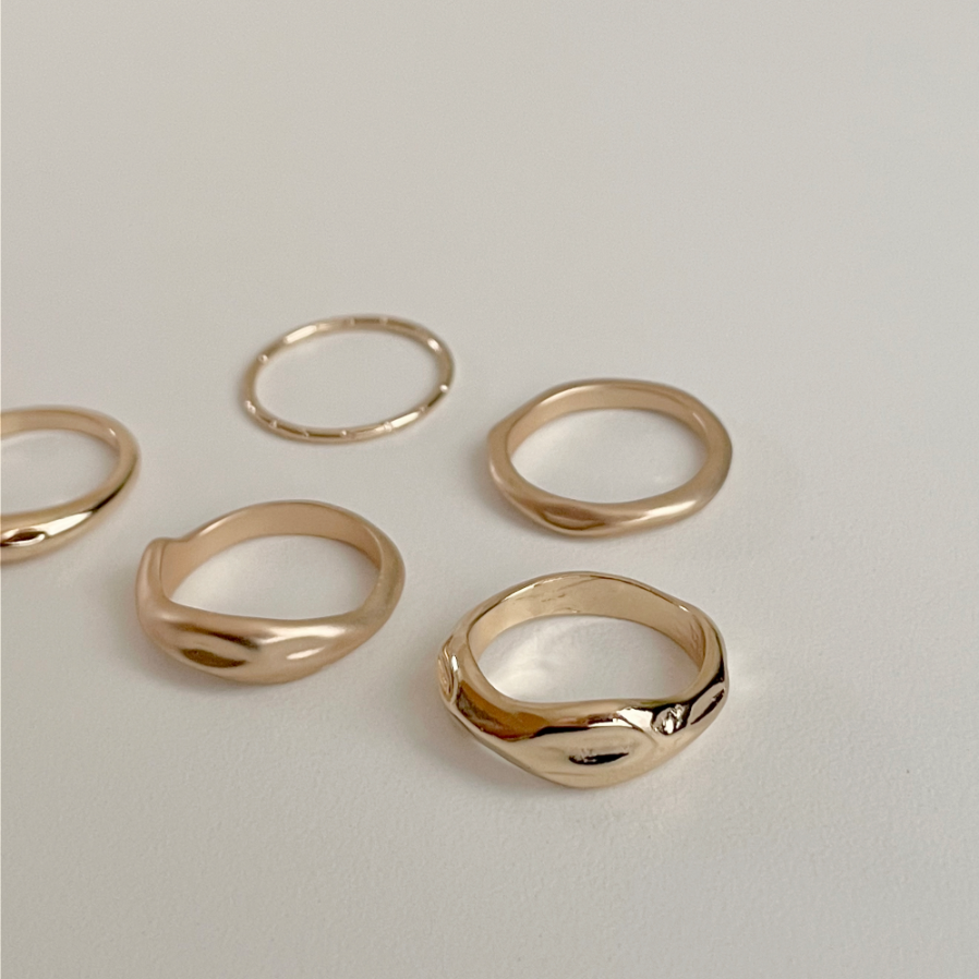 [5 set] 무광 볼드 심플 반지 세트 / 2 color / 유광 데일리 레이어드 여름 실버
