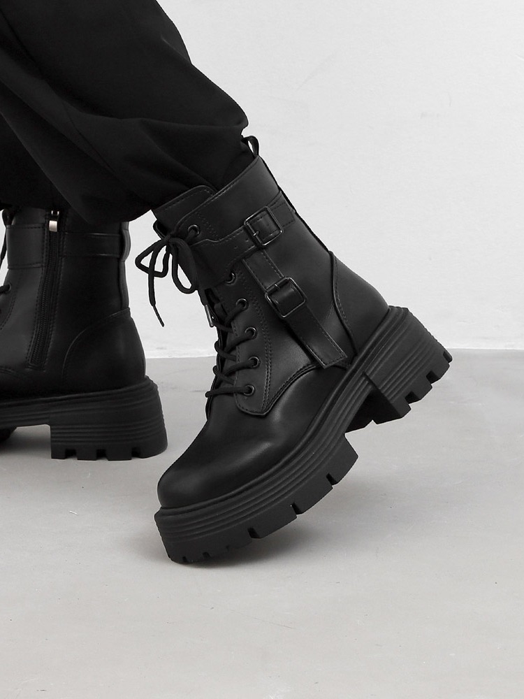 사이드 버클 T스트랩 지퍼 레이스업 통굽 워커(6.2cm) 11586