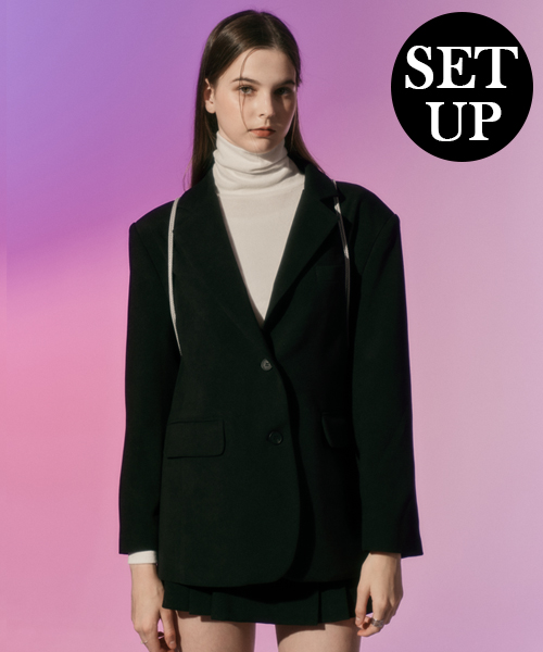 [셋업] 간절기 오버핏 루즈 블레이저 플리츠 미니스커트 세트 [기모ver.]