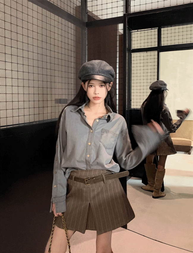 [가을신상/간절기]빈티지 톤다운 긴팔 데님셔츠 옆트임 단추 가을옷 여름자켓 흑청 그레이 캐주얼 힙한 데일리 코디 청셔츠