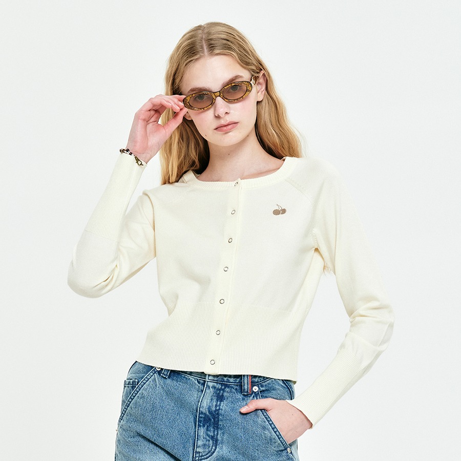 모노 체리 크롭 가디건 [아이보리]