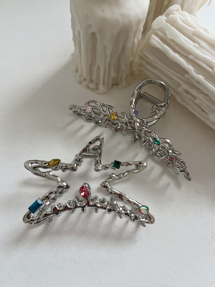 컬러 큐빅 러프 메탈 헤어 집게핀 (2type)
