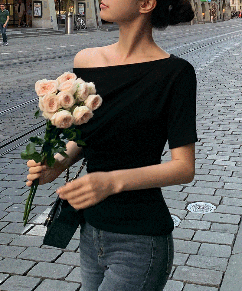 프로필 셔링 오프숄더 tee(하객룩/데이트룩/데일리룩/소개팅룩)