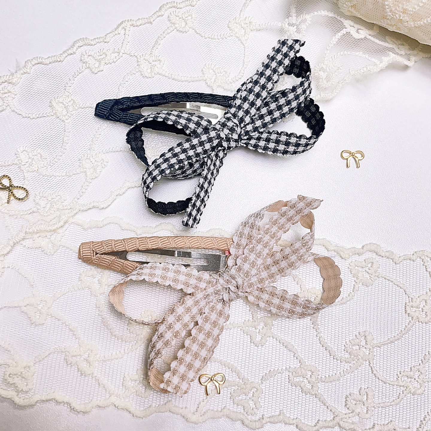 (2Color)체크무늬 핸드메이드 똑딱핀