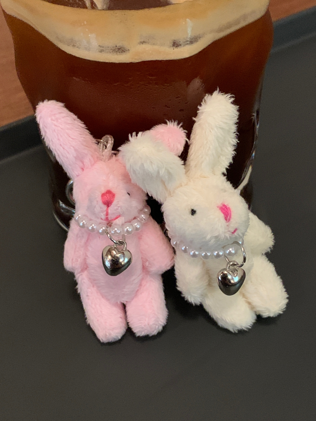 [당일출고] 토끼키링 진주 하트 목걸이 인형 에어팟 가방 키링 (2col)