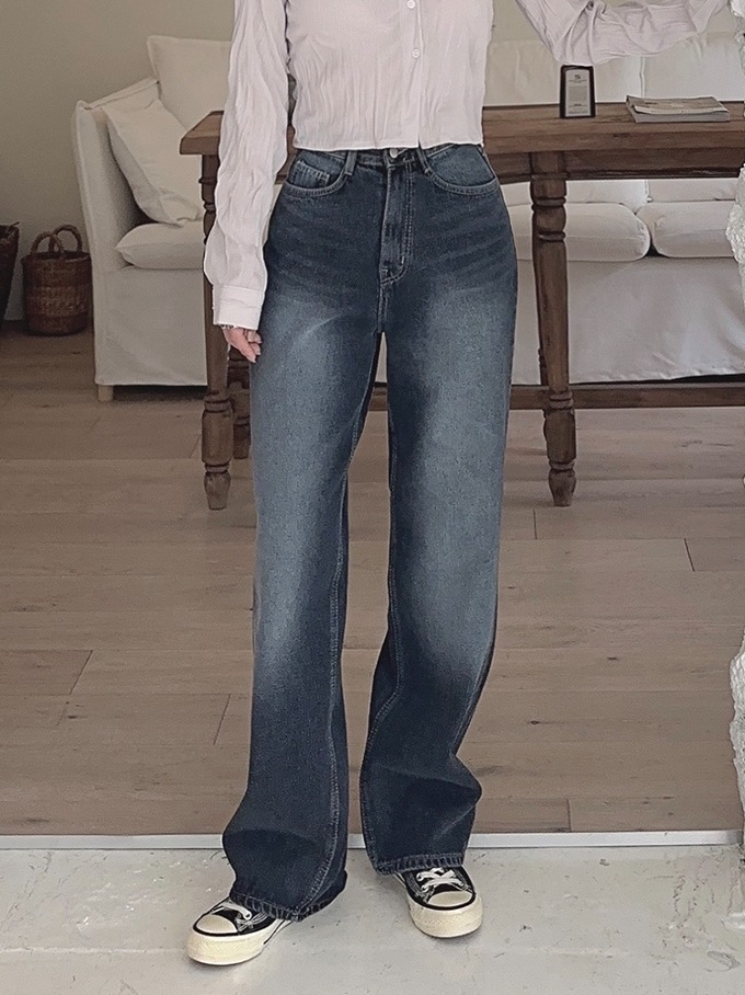 [ 그레이시진청/딥워싱 ] 알데 일자 와이드 데님 팬츠 (하이웨스트)