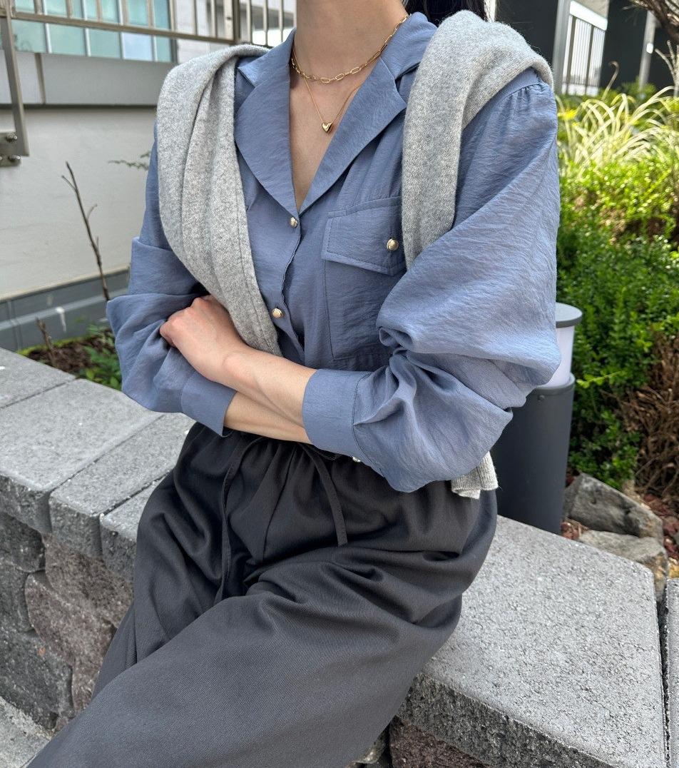 가을셔츠 블라우스 오피스룩 하객룩 데이트룩 간절기 골드버튼