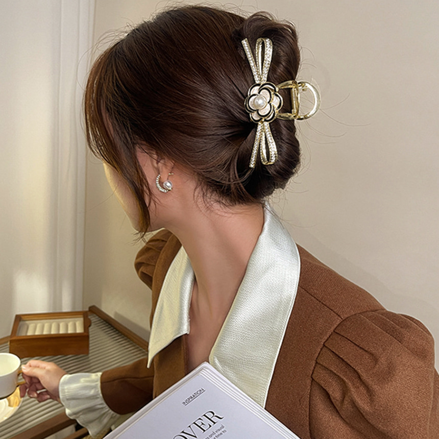 ❤️각인펜증정❤️ 까멜리아 큐빅라인리본 헤어집게핀