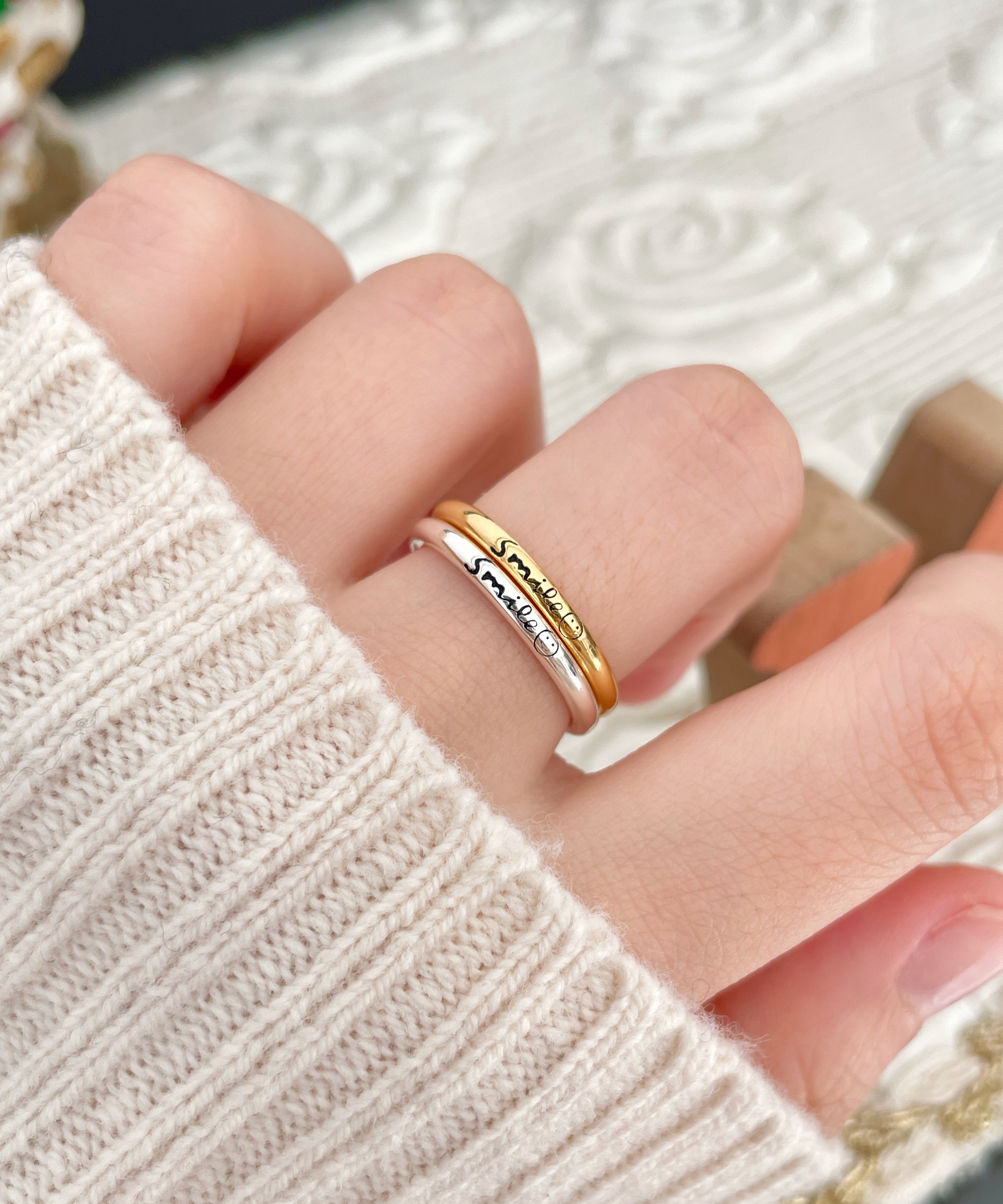 925실버 2mm 스마일 레터링 이모지 각인 우정 순은 반지 - 실버 골드
