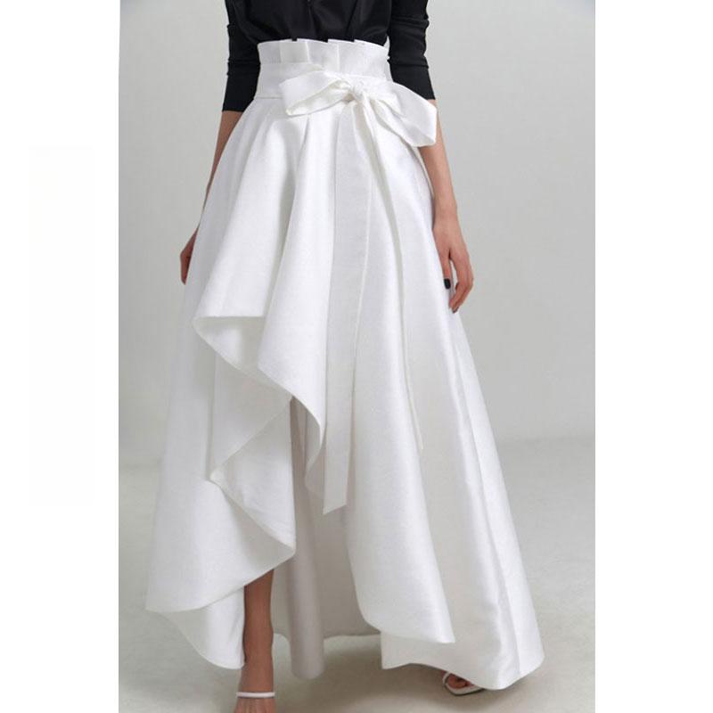 화이트 리본 스커트 언발런스 계량 한복 롱 바스락 햅번 명품 훌스커트 흰치마