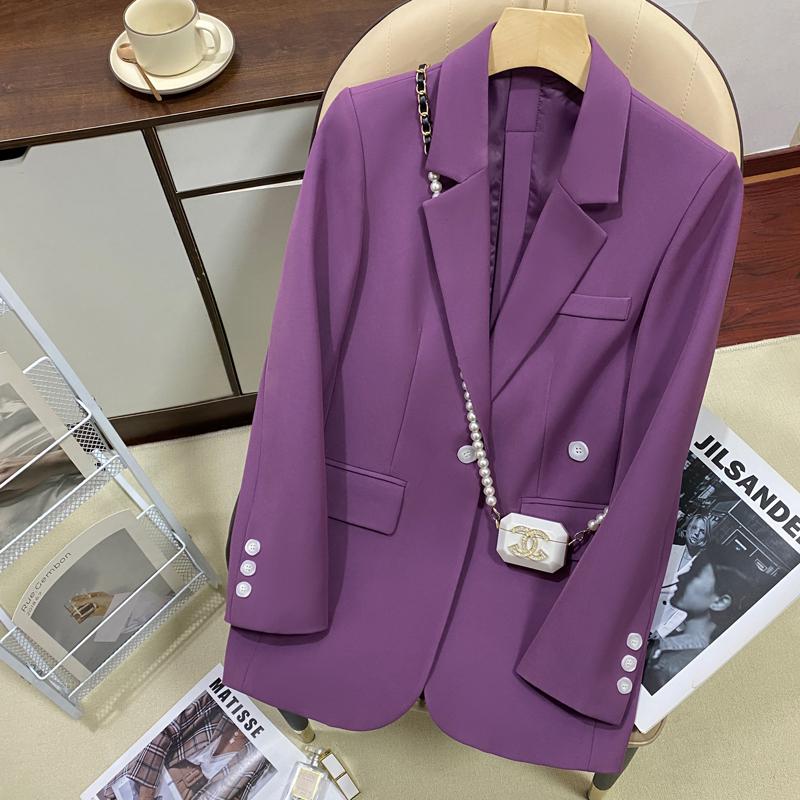 보라색 숄카라 명품 정장 자켓 핸드메이드 싱글 일자형 반코트