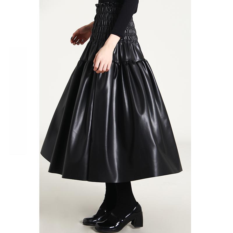 밴딩 스모크 가죽 블랙 스커트 핸드메이드 롱 명품스타일 검정치마