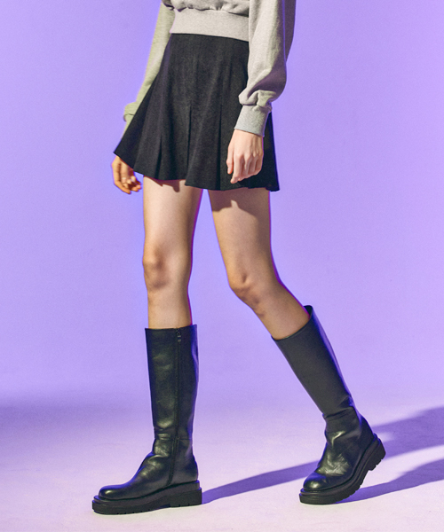 플리츠 코듀로이 플레어 미니스커트 [BLACK]