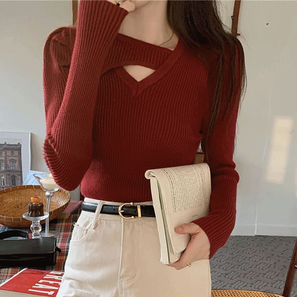 언밸 네크라인 슬림핏 골지 니트 티셔츠 데일리룩 캠퍼스룩 대학생룩 가을 환절기 봄 늦여름 데이트룩 러블리