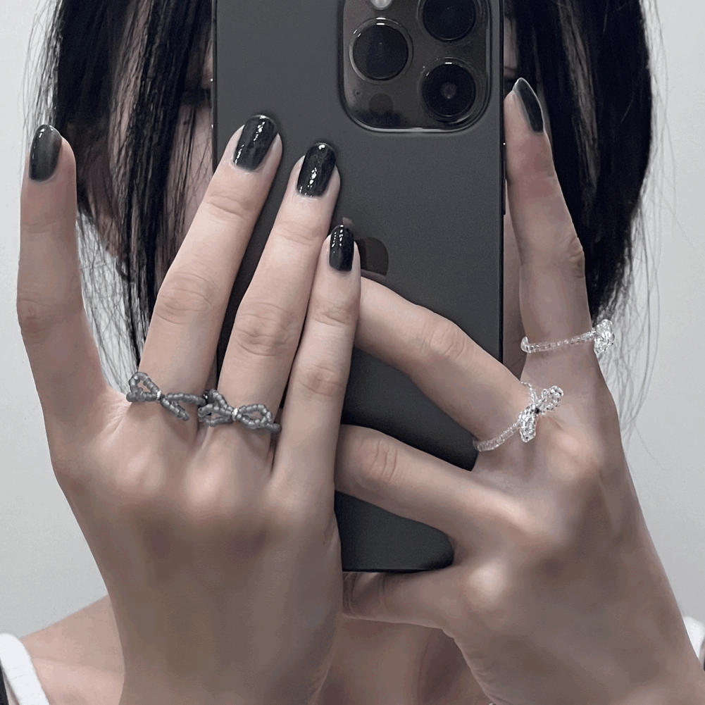 [1+1할인/유니크] 리본 발레코어 비즈 무채색 키치 반지 우정 링