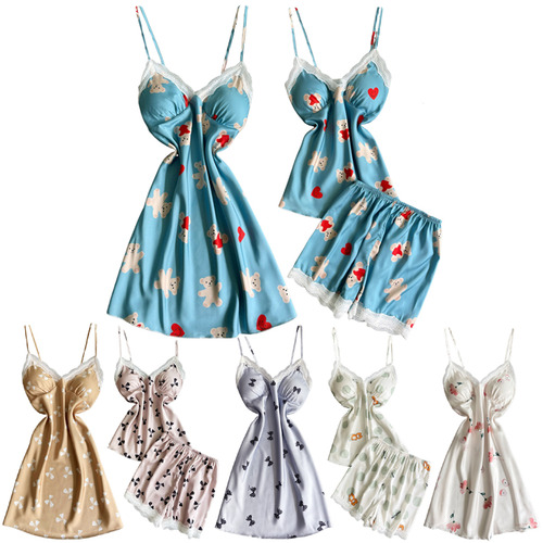 곰 브라캡 실크 슬립 원피스 투피스 나시 슬립웨어 홈웨어 란제리 파자마 섹시슬립 이벤트속옷 레이스