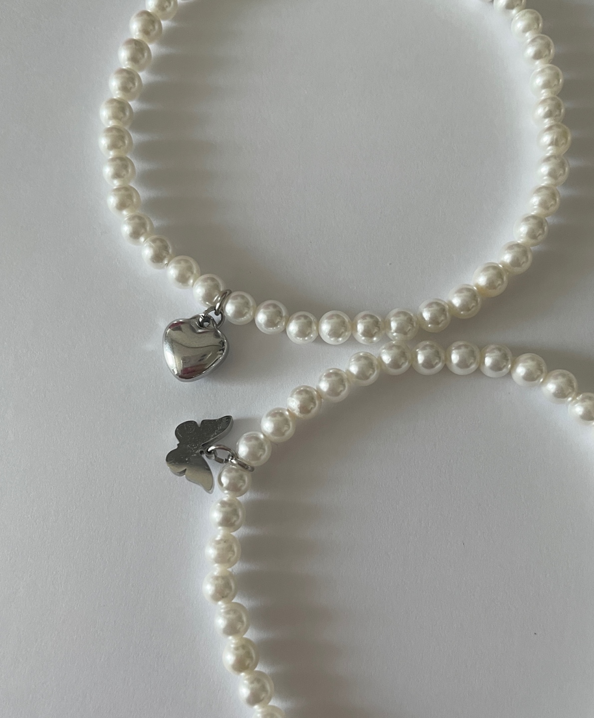 핵진주 특 에이급 써지컬스틸 팬던트 하트 나비 진주팔찌