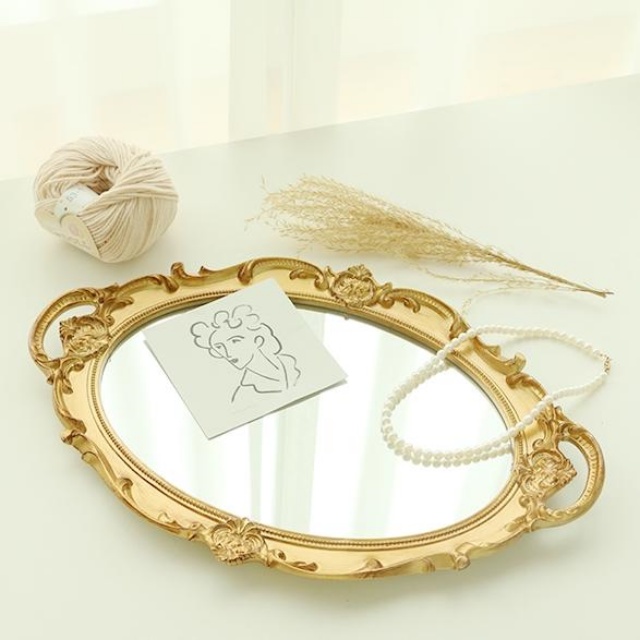 엔틱 북유럽 감성 미러 트레이 2컬러 - 골드 거울트레이 빈티지 인테리어 소품 거울쟁반 향수트레이 화장품 정리함 보관함 정리대