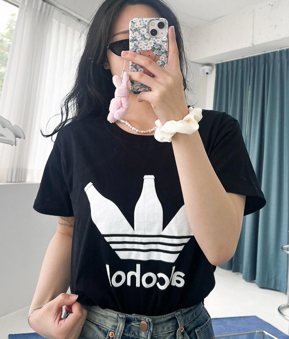 재밌는 패러디 반팔 티셔츠 - 알콜 로고 티 반팔티셔츠 웃긴 킹받는 쓸데없는 선물 라운드티 단체티 웃긴티셔츠 여름반팔티