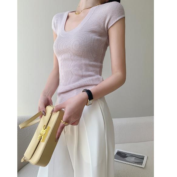연보라 골지 반팔 얇은 울 니트 흰티 티셔츠