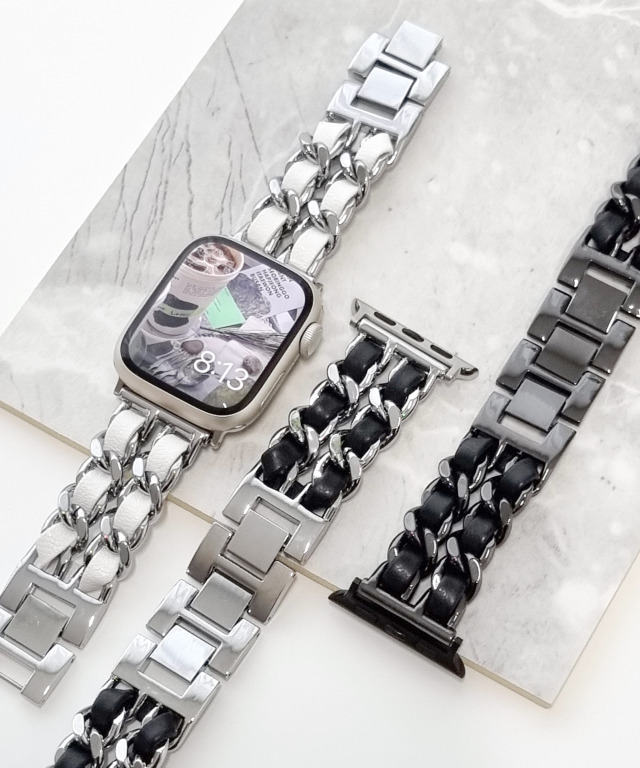 🚀당일출고💝 애플워치 더블 체인 가죽 스트랩 11 10 9 8 7 SE2 3 링크 브레이슬릿 메탈 스테인리스 시계줄 밴드 루프