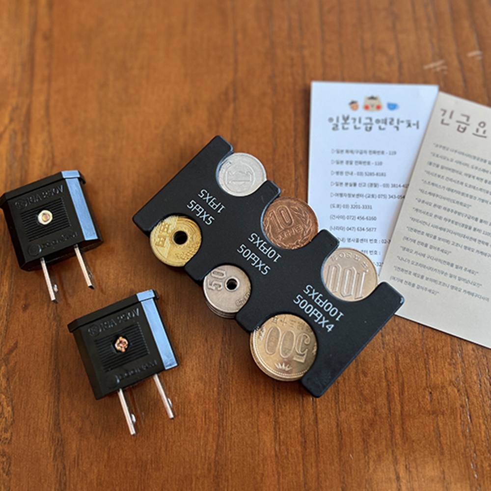 일본 여행 필수품 세트 [3종 돼지코 엔화 동전 지갑 케이스 키트 어댑터 110v 플러그 비상연락망 코인 홀더 일본여행 변환 코드 여행필수품]