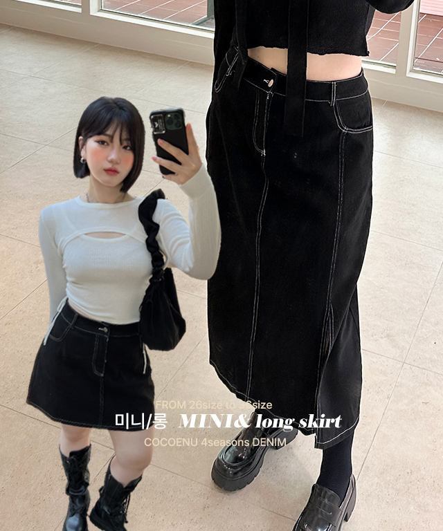 샌디블랙흑청 스커트( 블랙미니 데님 )