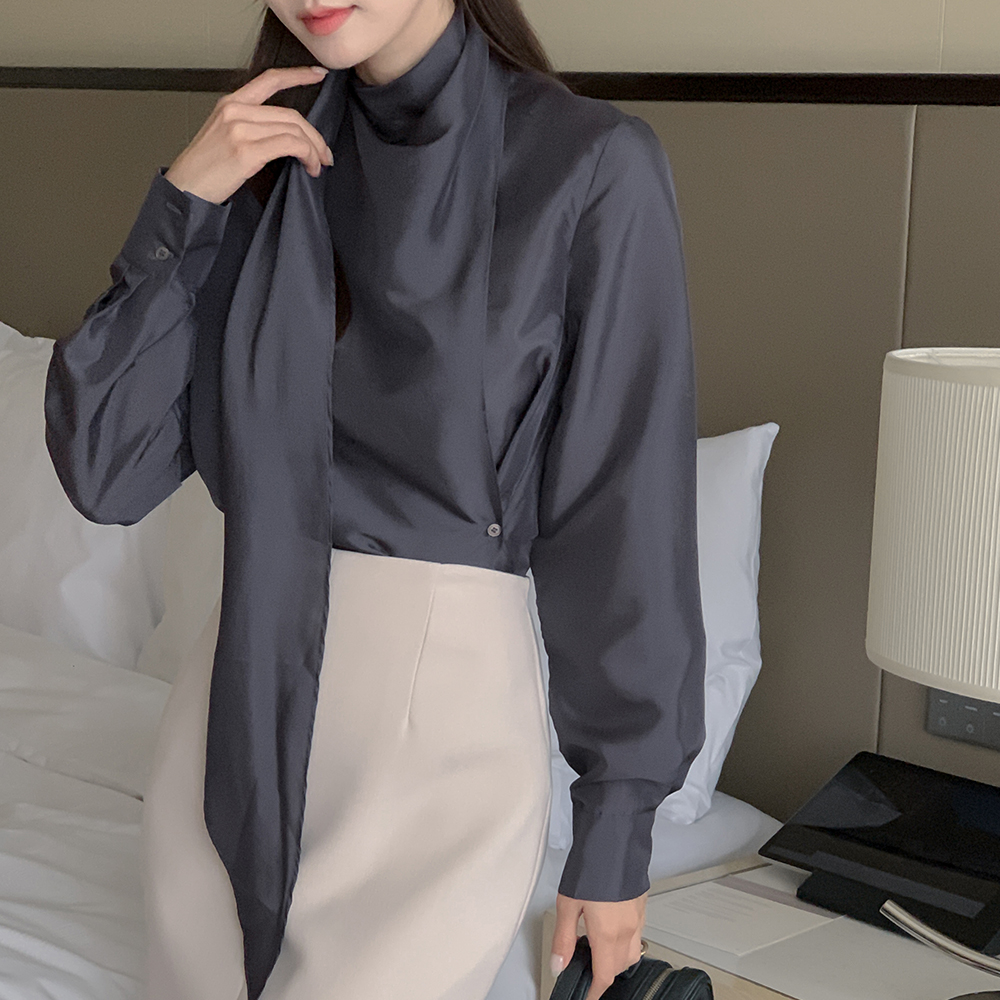 [Dali made]벨로즈 라운드 랩 버튼 타이 블라우스(하객룩/타이블라우스)