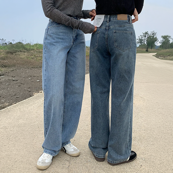 [12만장🏆색감극찬/핏미친] 와이드 스톤 데님팬츠 - 5color (와이드데님/스톤워싱/청바지/세미와이드/출근룩/봄바지/MADE/키작녀)