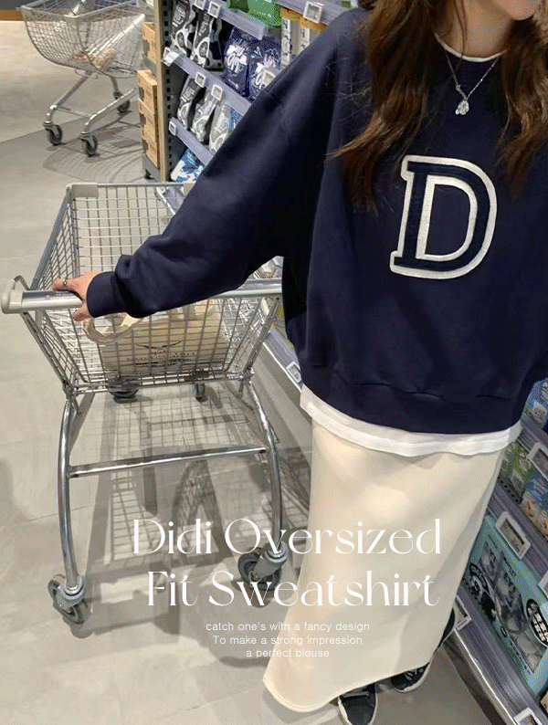 [가을🍁] 디디 오버핏 맨투맨_MTM7672 가을 간절기 래터링 나염 프린팅 루즈핏 오버핏 래글런 기본 베이직 라운드 배색 블록코어룩 보이프랜드핏 Y2K룩