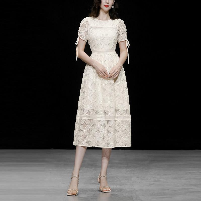 펀칭 플라워 리본 햅번 원피스 이브닝 드레스 신부2부 예복 휴양지 아이보리 빅사이즈