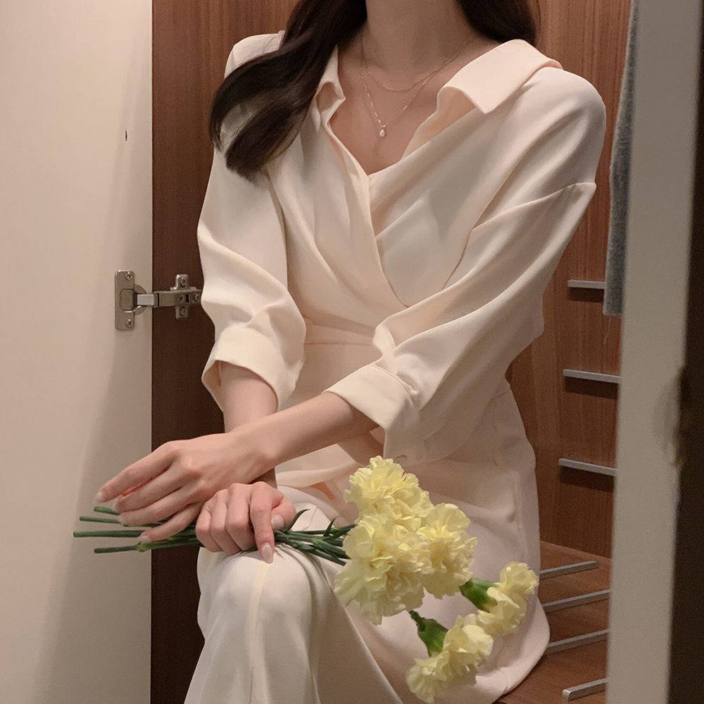[Dali made]뉴 로엘 카라 셔츠 랩 꼬임 스트랩 리본 롱 원피스(하객룩/체형커버)