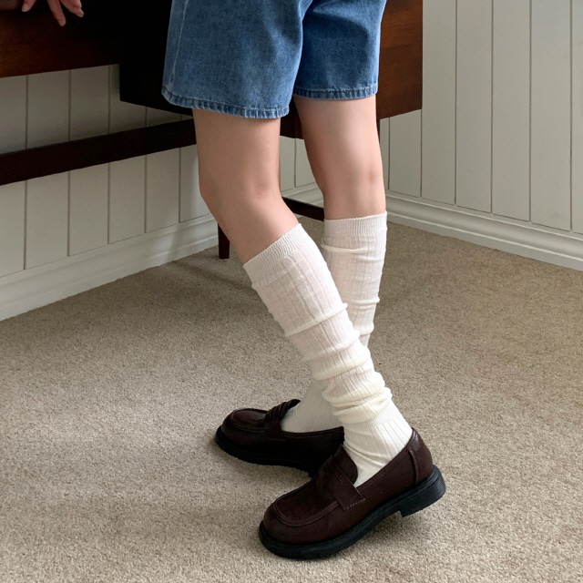 [무배] 수플레 롱 주름 데일리 루즈 니트 레그워머 니삭스 양말 5color