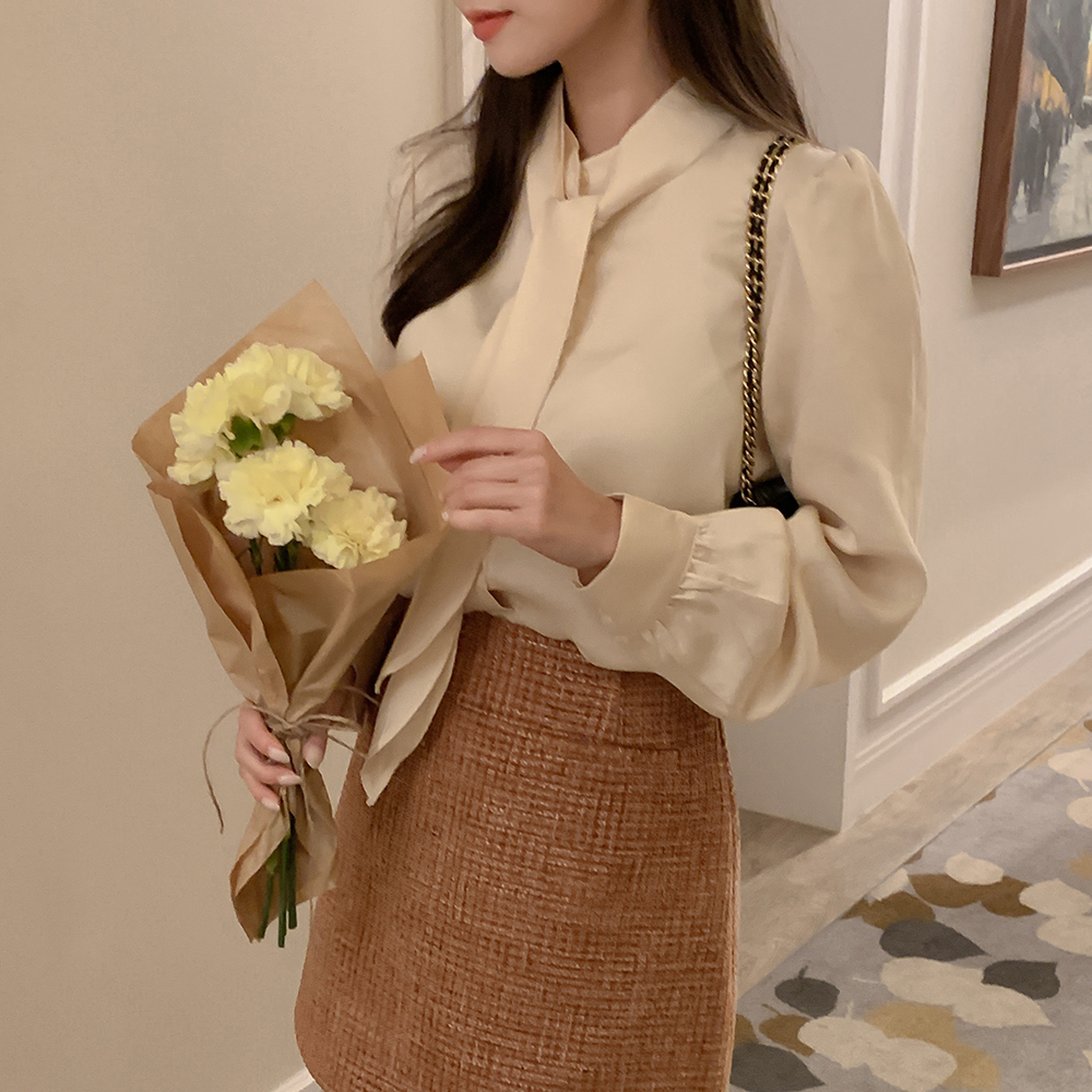 [Dali made/소매기장조절가능]블랑 스카프 타이 블라우스(실키ver)(하객룩/개강룩/출근룩)