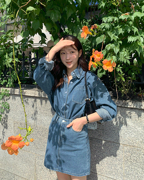[문의폭주] 오버핏 데님 청 셔츠 남방 미니 스커트 세트 (진청,연청)(S_M)