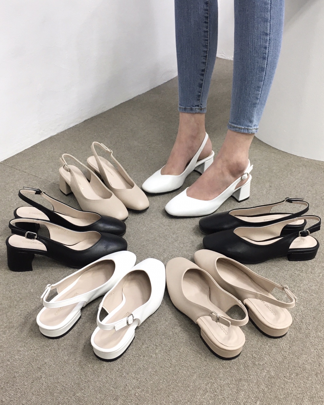 [당일배송/국산수제] 2cm,5cm 스퀘어 브이컷 통굽 쿠션 슬링백샌들 3color