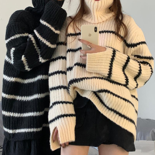 [2컬러] 소매트임터틀넥니트 터틀넥니트 스트라이프 목폴라티 니트티 줄무늬니트 여성터틀넥니트 여자터틀넥니트 겨울니트 여성니트 여자니트 스트라이프니트 소매트임니트